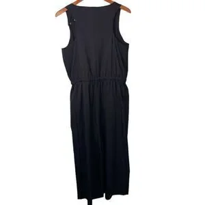 Zuda Z Eco black cropped wide leg sleeveless jumpsuit cinched waist pockets upf 50