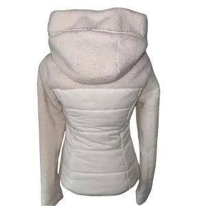 New with tags sold out Soia & Kyo off white hooded puffer jacket. Lightweight. Two zipper side pockets. Fleece detail at neck and hood. Zipper closure. Fitted and super flattering on. Sold out style. Runs true to size.