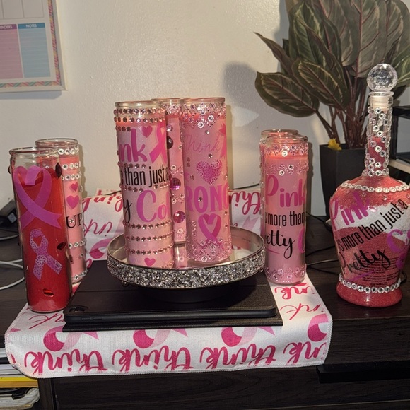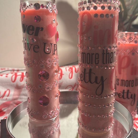 BREAST CANCER AWARENESS BLINGED OUT CANDLES TO REMEMBER OUR LOVED ONES💗🎀🎗️ 🥊