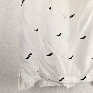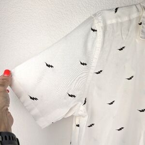 A camp collar and relaxed fit make for the perfect blend of cool and casual in this lightweight, sustainable-blend button-down with a lightening bolt motif.