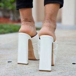 Women's Platform Heeled Mule Open Loafers White Color Patent
