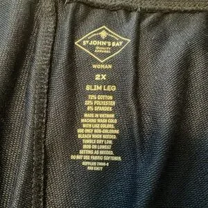 St John’s Bay Mid-Rise Slim Pant (2 pair) Plus Size 2X American Navy & Charcoal. 2 front pockets are awesome. Each pair only worn once or twice. In great condition.