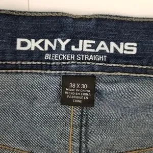 DKNY Bleecker Straight dark wash mens jeans 38x30. Light distressing. 68% cotton/ 32% polyester. Check measurements carefully. In good used condition.