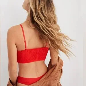 Embrace effortless elegance with this gorgeous Aerie floral lace bra, now available in a rich red hue. Designed for ultimate comfort and support, this #bralette-style piece features delicate lace detailing and a flattering longline band. Perfect for everyday wear or as a sultry underlayer, the bra's soft floral lace adds a touch of sophistication to your lingerie collection. Its pull over style is easy to put on and remove, making it both stylish and practical as a bralette or top .