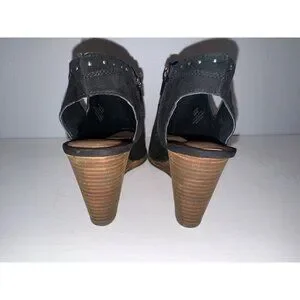 Lucky Brand Womens Shoes Sz 9 Ulyssas Black Suede Leather Peep Toe Wedge Booties