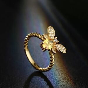 DAINTY Gold Plated Citrine Bee Ring