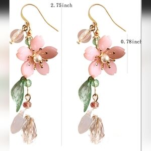 64. NWOT Cute Pink Flower Pearl Leaf Fairy Dangle Statement Earrings