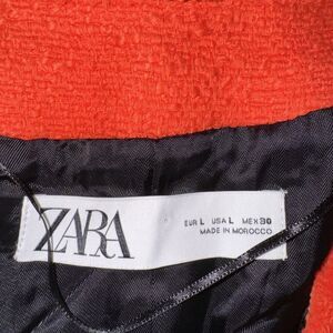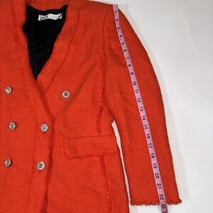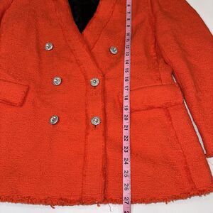 Zara Orange Red Tweed Double Breast Blazer Diamond Button Trinny Blogger Women L