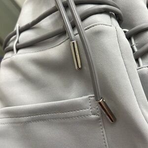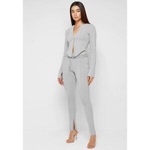 Neoprene grey front pleated belted