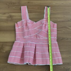 Anthropologie HD in Paris Cabana Peplum Bandage Striped Red White Blouse Medium
