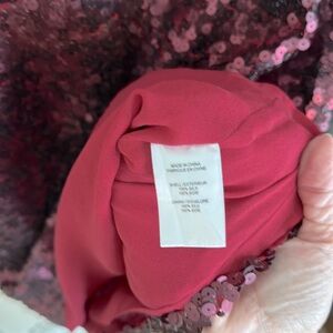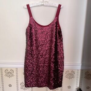 Beautifully crafted with burgundy sequins and 100% silk shell, the dress is fully lined