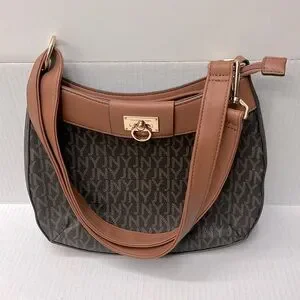 Jones New York Signature Handbag Purse Brown Monogram Pattern Faux Leather