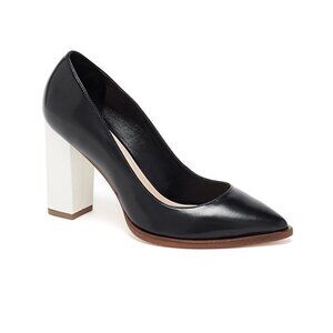 LOEFFLER RANDALL Leather Remy Block Heel Pump in Black & Cream Size 7.5