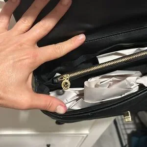 VALENTINO ORLANDI 6”x 11”x3” Black Quilted Bag Monogram Trim and Chain NWT $279