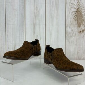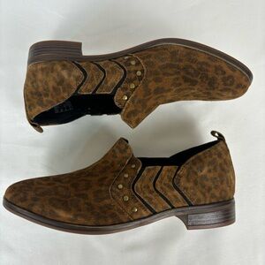 Clarks Trish Bell Shoe Bootie Leopard Print Suede Studded Comfort Slip-On Loafer Flats Shootie
