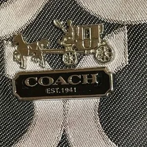 Horse and Carriage. Optic C’s. Large Shoulder Bag. Research says bag is Madison Maggie..Canvas bag. Black and silver with silver toned hardware. Light discoloration at base.