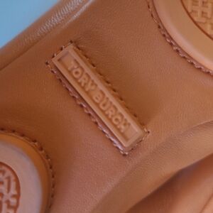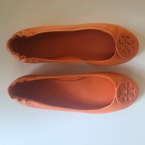 Tory Burch "Minnie" Travel Ballet Flay Leather TORYS Iconic Logo badge emblem in tonal bright orange