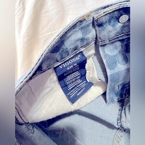 Super cute stretch denim shorts by Vigoss. Adorable Wildflower Wash technique and high rise fit.