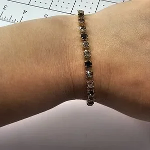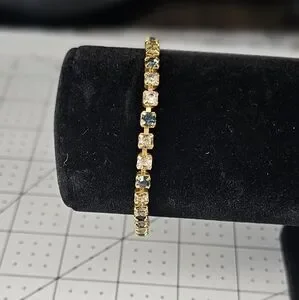 Vintage 90s Navy/Clear Rhinestones Gold Bracelet