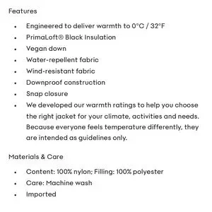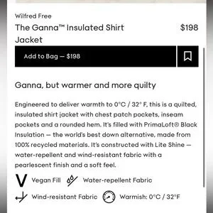 Engineered to deliver warmth to 0°C / 32° F, this is a quilted, insulated shirt jacket with chest patch pockets, inseam pockets and a rounded hem. It's filled with PrimaLoft® Black Insulation — the world's best down alternative, made from 100% recycled materials. It’s constructed with Lite Shine — water-repellent and wind-resistant fabric with a pearlescent finish and a soft feel.