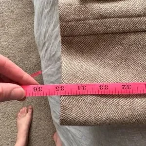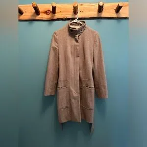 Zara mid-length tweed herringbone wool winter coat - long, oatmeal brown