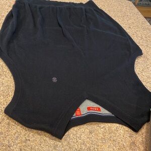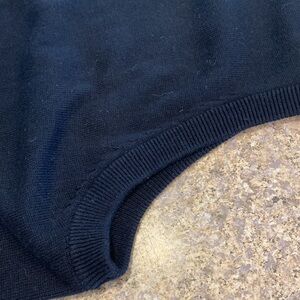 Izod Black Cotton Sweater Vest XLT XL Tall. I consider this to be a fairly thin /fairly lightweight sweater vest but you might feel differently about the weight and thickness. THIS LISTING IS FOR THE VEST ONLY. It pairs well with Yellow and Black L.L. Bean Shirt that I have listed; so I included a picture to show you what it would look like with the shirt in case you were interested in that listing as well. This vest is in used condition showing over all wear with some imperfections but has life left in it. There may be other imperfections since it isn’t new and is used. Measurements are approximate and colors may be off because of lighting. Bundle with other items from my closet and only pay 1 shipping fee up to 5 lbs packaged. There is lint on this vest. Again this listing is for the VEST ONLY and the Shirt is NOT included with this sale.
