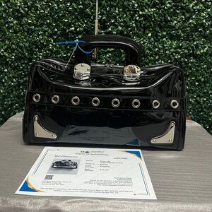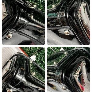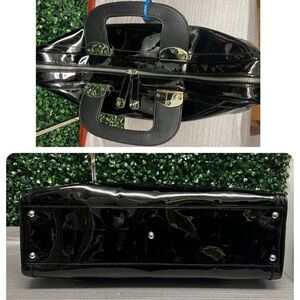 Condition: Please see all photos as they are part of listing. Overall in great condition with some color transfer (not obvious unless u look closely-since it is black bag) that is light white, all over. See last pic for examples. I shined up all silver hardware and the zipper is smooth. Interior is very clean.