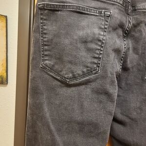 These stretch jeans are also slim and straight. They have a hole, as shown in the picture, on the left front outer side. Size 36X30.