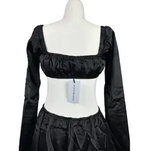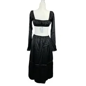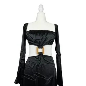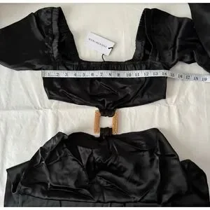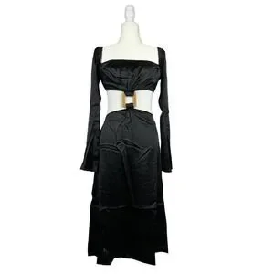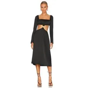 WeWoreWhat Cut Out Midi Dress in Black Satin Size M
