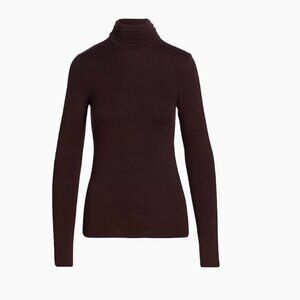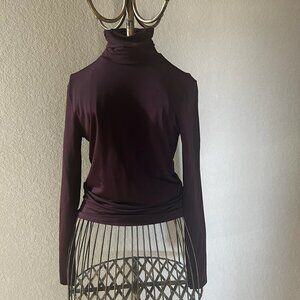 H&M A Luxurious Soft Sheen Finish Soft Touch Silky Fitted Turtleneck Top Fall Basic Minimalist Turtleneck, Minimalist Style Women's Turtleneck, Fall Maroon Sweater