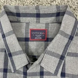 UNTUCKit Gray Plaid Stripe Flannel Long Sleeve Button Up Shirt Mens Size 2XL