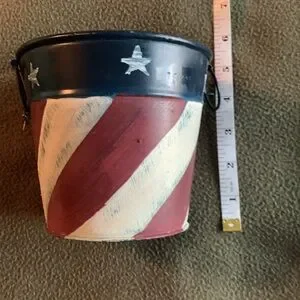 Set of 2 rustic Patriotic metal containers. Approx 8 1/2” x 5” and 4 1/2” x 5”