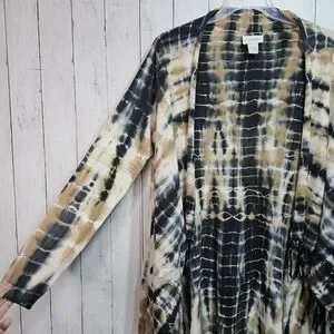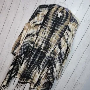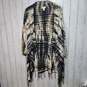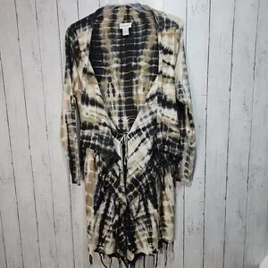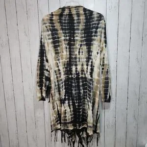 Soft Surrounding Women's Tan Black Tie Dye Fringe Drape Cardigan Size Medium.