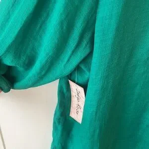 Thin material button down. Long blouse in green BMWT. Adjustable sleeves. Long tunic length. Size 2X