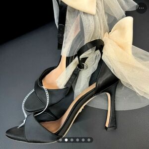 Antonio Melani Heels Black Size 10 Tulle White Bows Born on Fifth Elle Satin