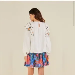 FARM Rio White Embroidered Fall Leaf white Blouse
