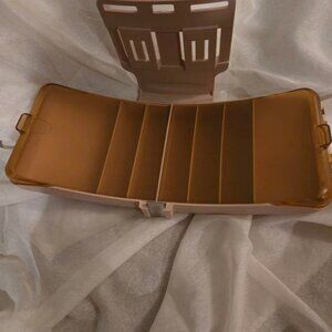 This vintage Outdoorsman Fishing Partner tackle box is the perfect companion for any fishing enthusiast. With seven dividers and seven compartments, it provides ample storage space for all your fishing gear. The waterproof, hard case design ensures that your equipment stays safe and dry. The tan color and classic design make this tackle box a stylish addition to any fishing outfit. The strap-on waist belt allows for easy access and hands-free convenience. Made of durable plastic, this tackle box is built to last and withstand the rigors of outdoor use. Whether you're a seasoned angler or just starting out, this tackle box is a must-have for any fishing trip.