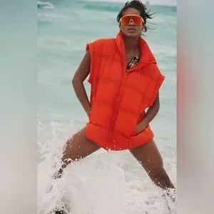 The perfect keeps-you-warm studio-to-street puffer, this water-resistant, satin-finish vest is featured in a bold, oversized style