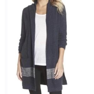 Barefoot Dreams Cozychic Lite Hooded Cardigan Sweater Women XS S Blue Long Soft