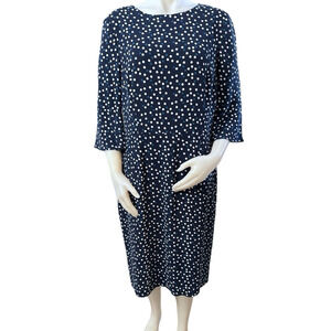 Boden Delia Dress 12R White Blue Polka Dot Flared Sleeve 3/4 Size 12R