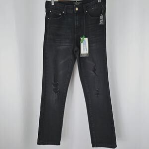 Rachel Roy Kindness Women's Black Mid-Rise Girlfriend Distressed Jeans Size 6/28