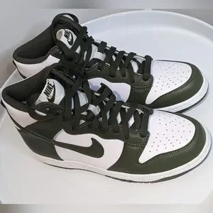 Brand new classy Nike High Dunk Retro GS in Cargo Khaki (white and khaki green)