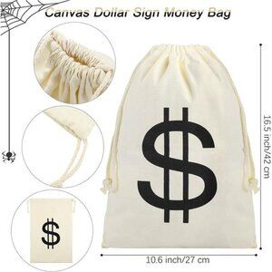 The included money bag, adorned with a bold dollar sign, measures 42 x 27 cm (16.5 x 10.6 inches), providing ample space for your essentials. Made of durable beige canvas with a drawstring closure, it’s easy to carry and perfect for your costume.