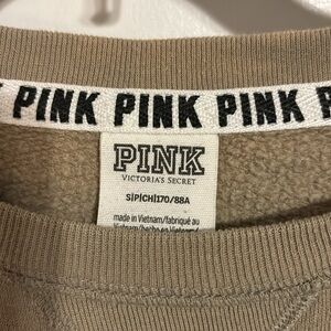 Super cute EUC VS pink army green with embroidered flowers down sleeve sweatshirt. Size small oversized fit