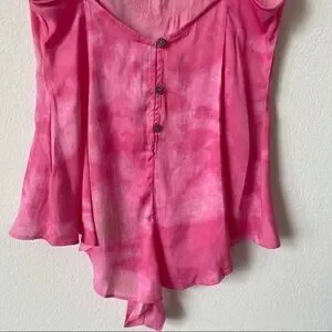 Free People Pink Luella Printed Tie Dye Lace Bodysuit XS Extra Small