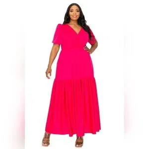 NEW NWOT LIVD Apparel Plus Size Joli Surplice Neck Dress Color Fuchsia Size 3X