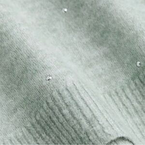 Soft, knit sweater made of recycled materials with sewn tiny rhinestones sparkle. Crew neck, dropped shoulders, and long sleeves. Ribbing at neck, cuffs, and hem.