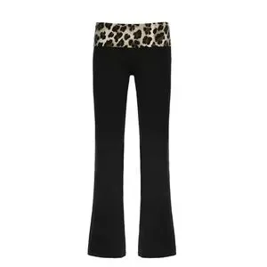Fold Over Leopard Print Yoga Pants with a Flare Bottom Stretchy Spandex Material