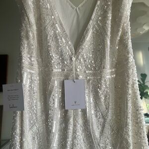 Looking for the perfect dress for your big day? This new with tags Lulus Just the Beginning White Beaded Sequin Mermaid Maxi Dress is an absolute showstopper! The photos don’t do it justice—this dress is elegance personified with intricate beadwork and sparkling sequins that catch the light beautifully.