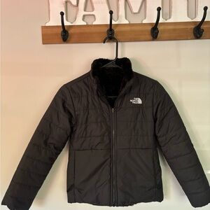 North Face Girls' Reversible Mossbud Swirl Jacket size 7/8. Smoke free home. Only worn a couple times. Can be added as mix and match for North Face jackets or worn alone.